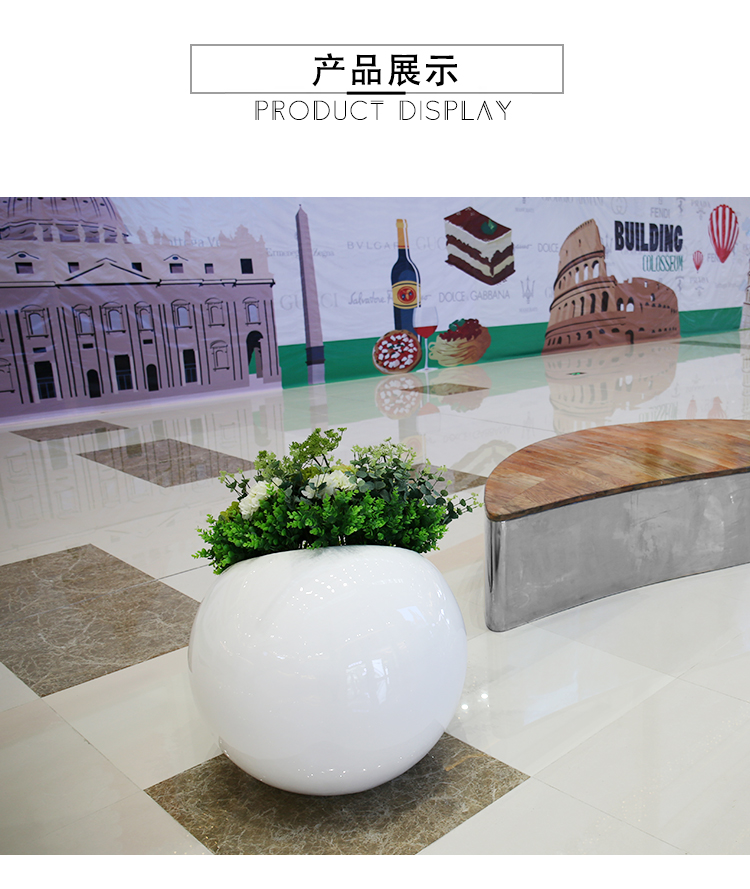 伤或破碎现象,一般可以放置在地面人流量通行不大的地方以防止出现阻挡通道,由于玻璃钢花钵本身有一定的自重量,因此是杜