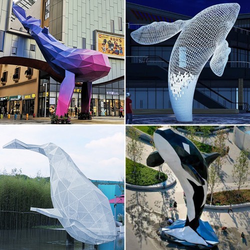 玻璃钢鲸鱼雕塑大型不锈钢海豚动物景观摆件优势: