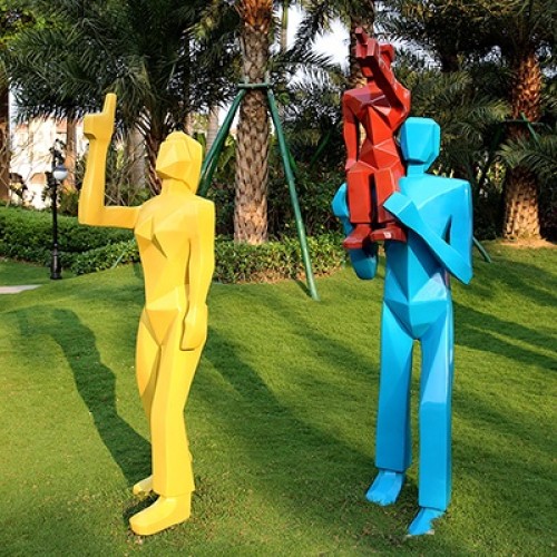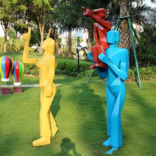 玻璃钢雕塑简洁大方、棱角分明、颜色选择性大、更有立体感。玻璃钢雕塑是城市雕塑中重要的组成元素,能起到点缀环境、化龙点睛的作用。