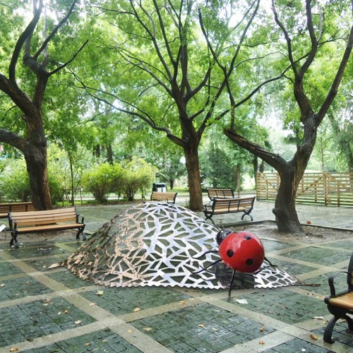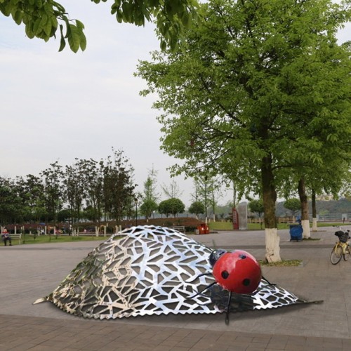 1、表面处理,不锈钢雕塑本身的颜色银白色,具有光泽。也可根据需求为雕塑上不同的颜色,一般 为汽烤漆。