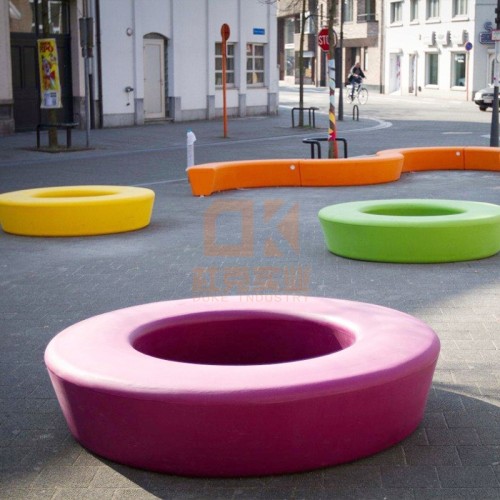 2、玻璃钢树池采用手糊成型办法,制造前应设计成型线路。从花盆的一端着手,组合一局部模具后糊制产品。待前一局部固化后再组合模具,继续糊制产品。在便于成型操作的前提下,一次尽可能多地组合模具单元块。如此重复,最后留出一单元块,该单元块预先成型后胶接到整体花盆上。