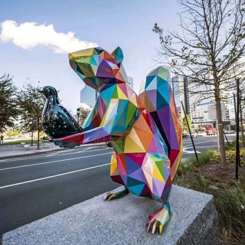 1、表面处理,不锈钢雕塑本身的颜色银白色,具有光泽。也可根据需求为雕塑上不同的颜色,一般 为汽烤漆。